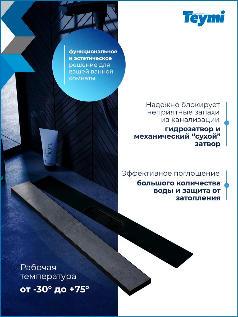 Трап для душа под плитку с комбинированным гидрозатвором Teymi Aina Prime черный 50 см T90009: сравнение цен, характеристики, фото, актуальное наличие и цены.
