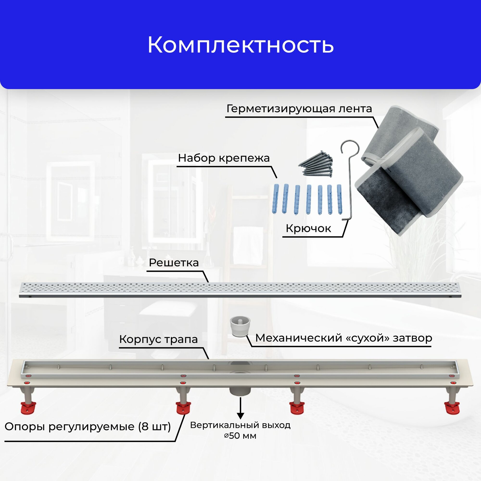 Купить Трап линейный сливной для душа с сухим механическим затвором с перфорированной решеткой или под плитку 1000 с рамкой ТП-50.1А-1000 «Волна» с вертикальным выходом с доставкой по всей России. Трап линейный сливной для душа с сухим механическим затвором с перфорированной решеткой или под плитку 1000 с рамкой ТП-50.1А-1000 «Волна» с вертикальным выходом: сравнение цен, характеристики, фото, актуальное наличие и цены.