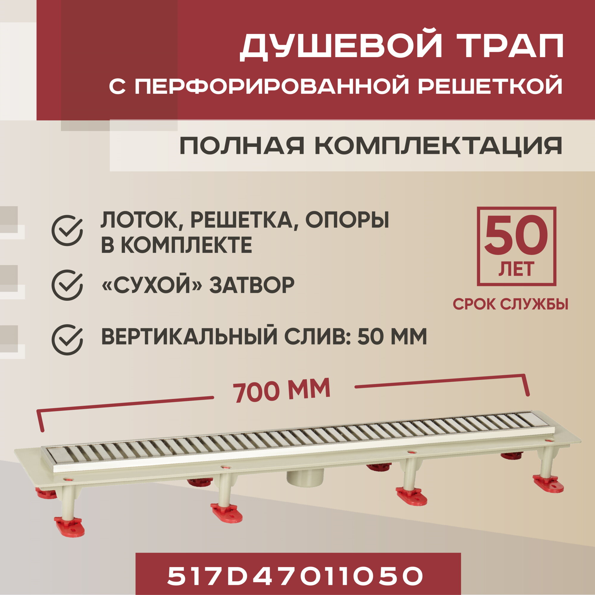 Благодаря наличию запахозапирающего устройства, трап надежно защищает помещение от неприятных запахов из канализации.