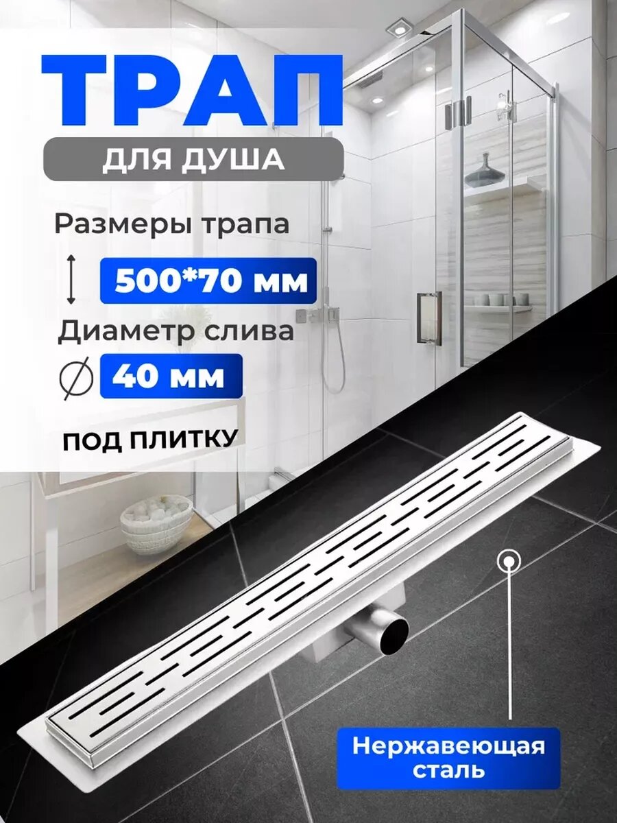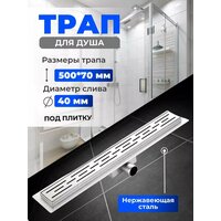 Трап напольный решетка (лоток) для душа под плитку с горизонтальным выходом из нержавеющей стали 70х500: сравнение цен, характеристики, фото, актуальное наличие и цены.