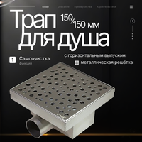 | Состав | встраиваемый сифон, выпуск, гидрозатвор, декоративная накладка, заглушка, изоляционный фланец, крюк для демонтажа, лоток, механический затвор, набор для установки, ножки, рамка, решетка, слив-перелив, сухой затвор, трап, труба сливная |