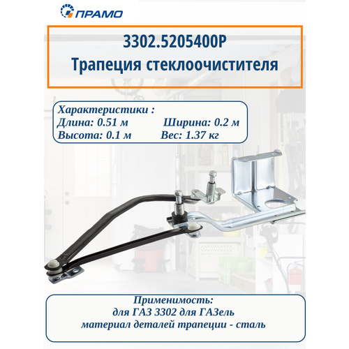 Трапеция прамо 3302.5205400P, для стеклоочистителя, сталь, длина 51см, для ГАЗ 3302 Изготовлена из прочной стали, что обеспечивает долговечность и устойчивость к коррозии.
