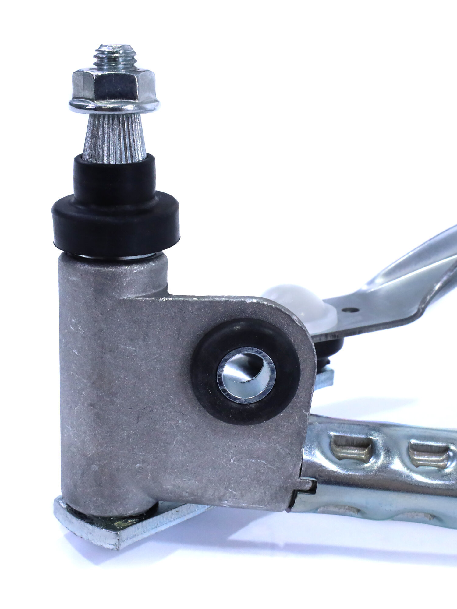 Крепится на моторчик привода стеклоочистителя при помощи шлицевых соединений. Фиксация рычажных механизмов выполняется болтами М6х12 с использованием стандартных гаек и шайб. Механизм оснащен специальными монтажными отверстиями для надежной фиксации рычагов дворников на оси вращения. Такой способ крепления обеспечивает надежный контакт между двигателем и рабочими элементами стеклоочистительной системы, гарантируя четкую передачу усилия и предотвращая люфт и износ подвижных частей.