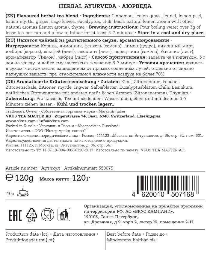 Купить Травяной чай листовой Аюрведа 120 гр с доставкой по всей России. Травяной чай листовой Аюрведа 120 гр: сравнение цен, характеристики, фото, актуальное наличие и цены.