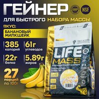Гейнер Life MASS - источник белка и углеводов. Углеводный Гейнер на сложных (медленных) углеводах для набора веса и массы. Высокобелковый, высокоуглеводный гейнер с фруктовым нежным вкусом банана идеально подойдет как начинающим, так и профессиональным спортсменам. ЧТО такое GAINER ? Представляет собой сухую концентрированную смесь белкового компонента (чаще всего это протеин в виде изолята) и сложных углеводов. А так же богат витаминами, минералами и аминокислотами, биоактивными добавками. Все они взаимно дополняют друг друга и действуют в комплексе. Идеальный баланс простых и сложных углеводов, сывороточным белком, комплексом жиров Омег 3, 6, 9, кальцием, фосфором, железом, витамином С, А и конечно только натуральная ароматика. цель добавки в спортивном питании - повышение мышечной массы и веса атлета в кратчайший период, увеличение объема потребляемых калорий без переедания для обеспечения организма энергией, и ускорения восстановления мышц после тренировок. польза гейнера Сложные углеводы в биодобавке увеличивают выработку инсулина, который помогает усваиваться белкам и другим веществам, «открывая» клетки мышечных волокон, способствует улучшению белкового, жирового и энергетического обменов, который влияет на насыщение энергией перед посещением спортзала и быстрому восстановлению дефицита после тренировок. масс мужчинам худым (эктоморфам)- высокое содержание углеводов является отличным решением для набора массы. Высокая калорийность позволяет покрыть суточную потребность. MACC женщинам (худым) идеален для увеличения обьема и придания телу рельефных форм. В составе используются запатентованные формулы: Clean Cream- позволяет насладиться насыщенным вкусом и кремообразной текстурой коктейля. Go Fat- это комплекс полезных жирных кислот с CLA, орехами кокоса и макадамии, а также лучшим в мире оливковым маслом. За счёт Go Fat, текстура белково углеводной смеси приобретает нежность и приятную густоту, а вкус становится сглаженный и еще более сбалансированный. Carb 10 - это запатентованная формула полезных углеводов без малтодекстрина, является источником здоровых калорий, которая также улучшает работу кишечника и не вызывает сбоев в работе организма.1 порция в 100 гр. содержит:22 гр. белка61 грамм углеводов5,89 г. полезных жиров.-до тренировки- восполняем запасы энергии, необходимых при интенсивной и длительной тренировке. Оптимальное время приема — за 30 минут до начала занятий. Так организм успеет усвоить вещества, а тело сможет выполнять упражнения качественнее и большей отдачей. Легкая атлетика, футбол, велоспорт, единоборства – по этим и другим видам спорта даются гораздо легче, если использовать белково-углеводные добавки.-после тренировки - полезной добавкой в период «углеводного окна», когда истощенный физической нагрузкой организм особенно нуждается в питательных веществах и энергии. Сразу после тренировки организм начинает усиленно потреблять углеводы из всех доступных источников, так как ему требуется энергия на восстановление. Если она не поступает извне, он может затронуть и мышечные ткани. Чтобы этого не произошло, важно в течение 30-45 минут после занятий утолить углеводный голод. Долгоусваяемая изомальтулоза - насыщает нас энергией лучшего качества и практически не вызывает кариеса зубов. Протеин гейнер идеален для набора