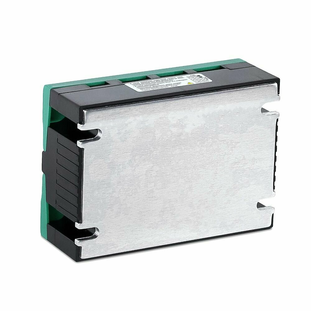 Устройство имеет компактные размеры (ширина 80 мм) и зеленый цвет, что делает его эстетически привлекательным и легко интегрируемым в любую систему.