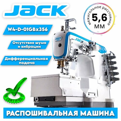 Jack W4-D-01GBx356 промышленная трехигольная распошивальная/ плоскошовная швейная машина (межигольное расстояние 5,6мм): сравнение цен, характеристики, фото, актуальное наличие и цены.