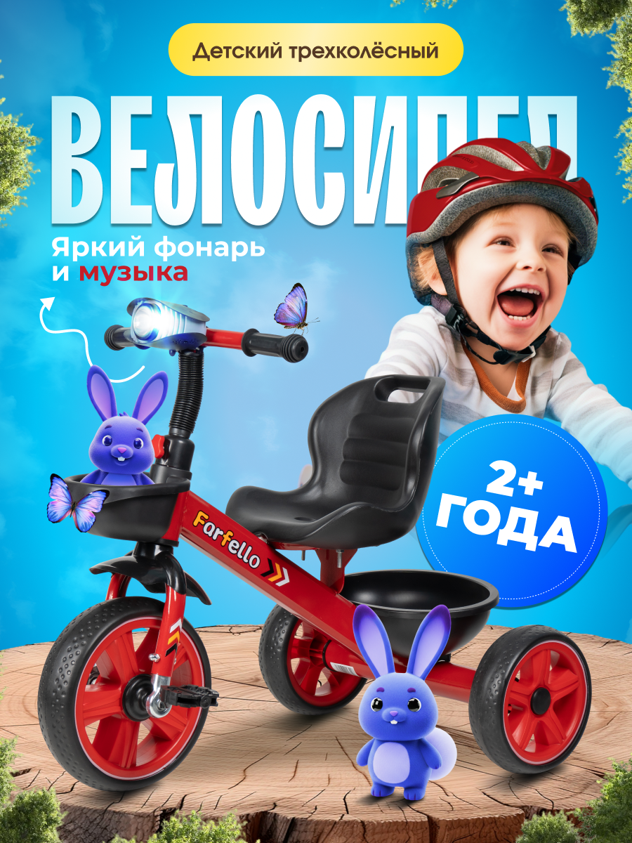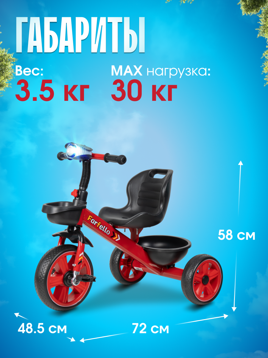 Велосипед трехколесный Farfello 207, для детей до 5 лет, максимальная нагрузка 35кг, красный: сравнение цен, характеристики, фото, актуальное наличие и цены.