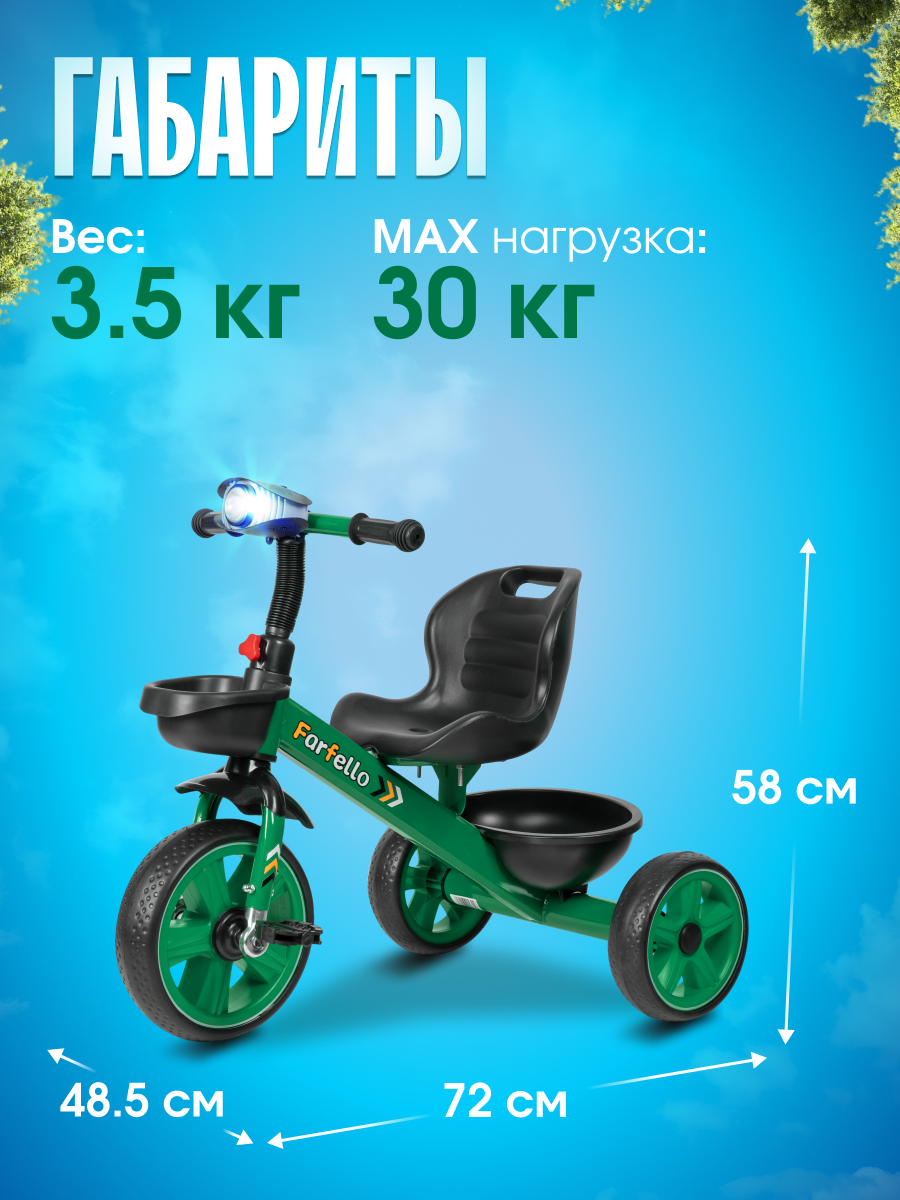 Велосипед трехколесный Farfello 207, для детей до 5 лет, максимальная нагрузка 35кг, зеленый: сравнение цен, характеристики, фото, актуальное наличие и цены.