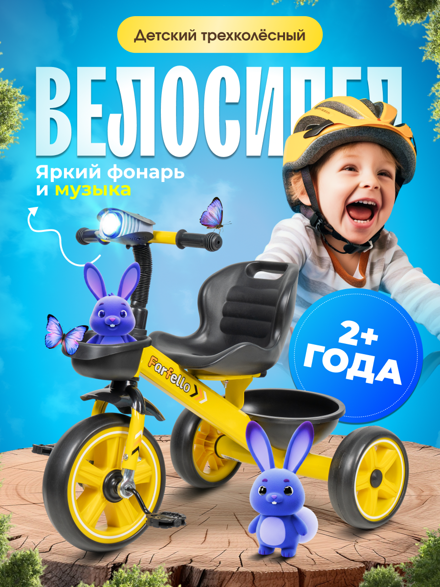 Велосипед трехколесный Farfello 207, для детей до 5 лет, максимальная нагрузка 35кг, желтый: сравнение цен, характеристики, фото, актуальное наличие и цены.