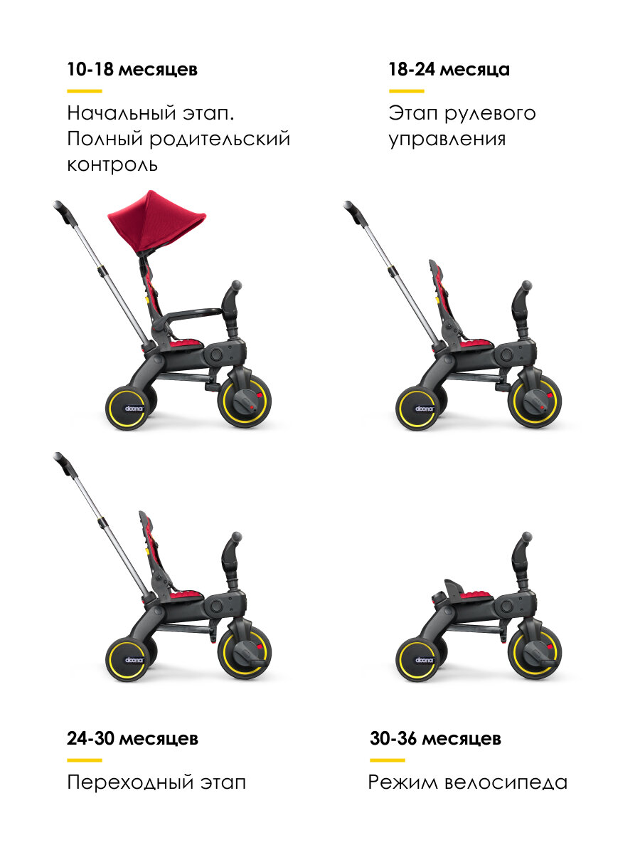 Складной трехколесный детский велосипед — коляска с родительской ручкой Doona Liki Trike S1, цвет: Flame Red: сравнение цен, характеристики, фото, актуальное наличие и цены.