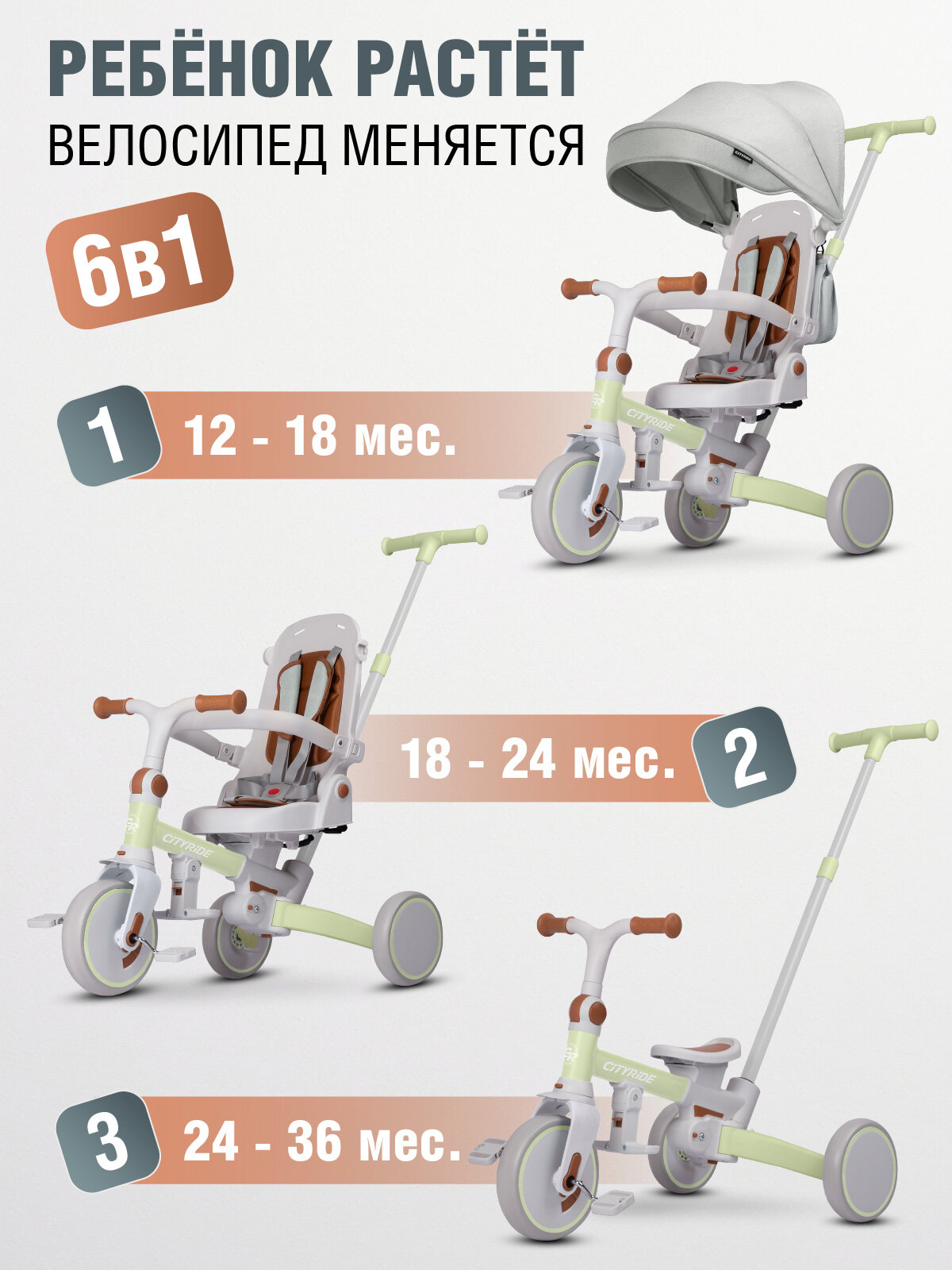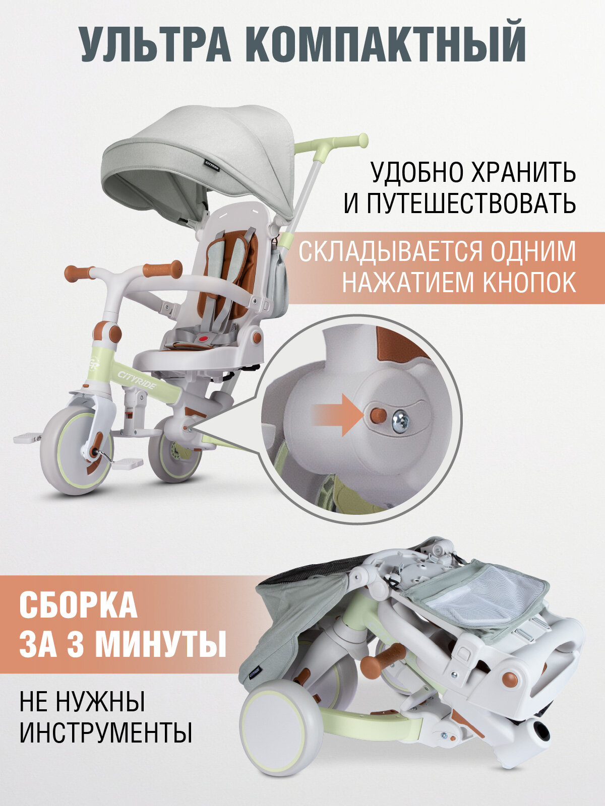 Купить Трехколесный велосипед-трансформер CITYRIDE 6в1, беговел, складной, колеса 8″/7″, с родительской ручкой, CR-B3-15GN с доставкой по всей России. Трехколесный велосипед-трансформер CITYRIDE 6в1, беговел, складной, колеса 8″/7″, с родительской ручкой, CR-B3-15GN: сравнение цен, характеристики, фото, актуальное наличие и цены.