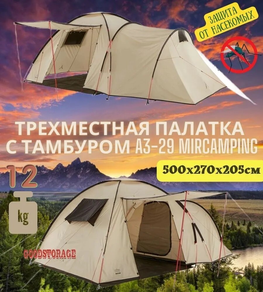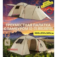 Купить Трехместная палатка с тамбуром A3-29 Mircamping с доставкой по всей России. Трехместная палатка с тамбуром A3-29 Mircamping: сравнение цен, характеристики, фото, актуальное наличие и цены.