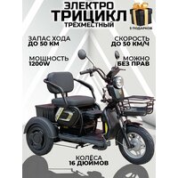 Купить Трехместный электротрицикл для взрослых Leopard, 1200W, R16, 50 км/ч, черный с доставкой по всей России.