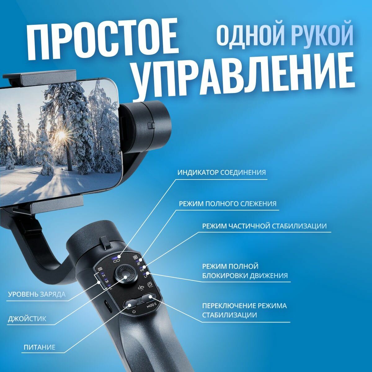 Трехосевой стабилизатор мобильного телефона для съемки - это инновационное устройство, которое позволяет вам снимать профессиональное видео прямо с вашего смартфона. Он оснащен тремя осями стабилизации, что позволяет компенсировать тряску рук и создать плавные, стабильные и качественные кадры. Этот трехосевой стабилизатор камеры как штатив идеально подходит для любителей видеосъемки, блогеров и профессионалов, которые хотят получать отличные результаты без использования сложного оборудования. Благодаря своей компактности и легкости, его можно легко брать с собой в путешествия или использовать в повседневной жизни. Стабилизатор как селфи палка монопод с распознаванием лиц обеспечивает плавный и стабильный ход при съемке движущихся объектов, позволяет вам сделать панорамные снимки, а также имеет функцию автоматического следования за объектом. Благодаря интеллектуальной системе стабилизации, вы сможете получать видео высокого качества даже при быстром движении. Такая селфипалка для смартфона станет необходимым аксессуаром для телефона и великолепным подарком на День Рождения и Новый год.