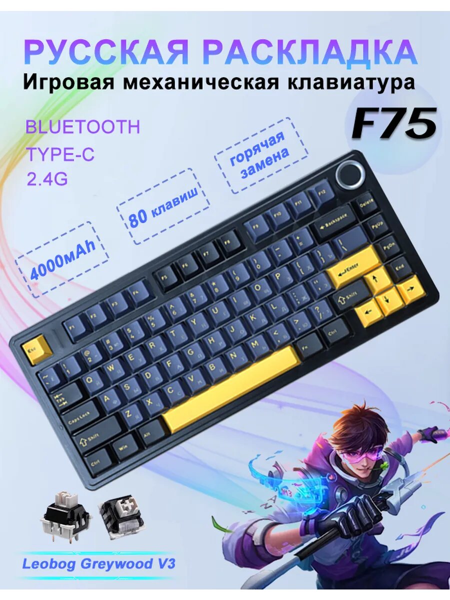 Купить Трехрежимная механические клавиатуры F75 Leobog Greywood V3 с доставкой по всей России.