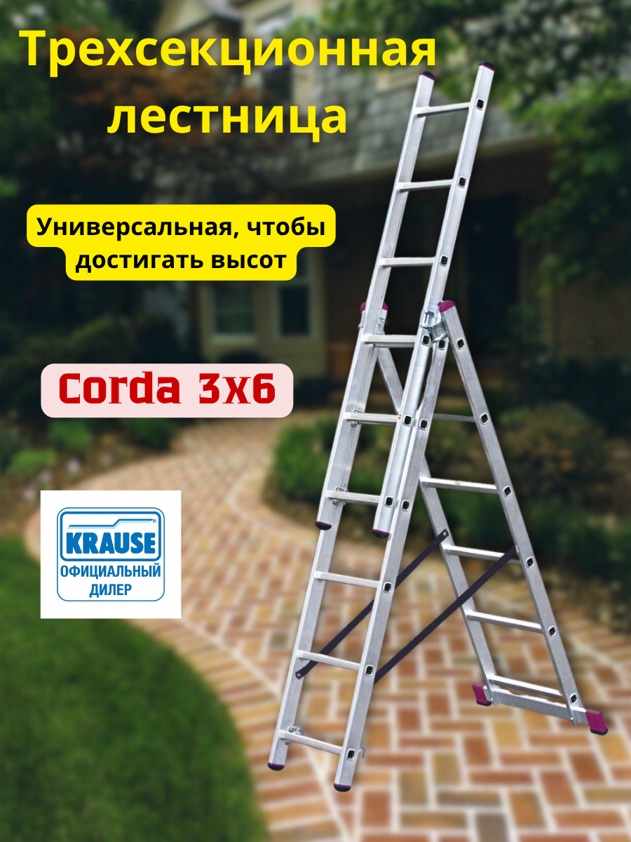 Купить Трехсекционная универсальная лестница KRAUSE Corda, 3х6, арт. 010360 с доставкой по всей России. Трехсекционная универсальная лестница KRAUSE Corda, 3х6, арт. 010360: сравнение цен, характеристики, фото, актуальное наличие и цены.