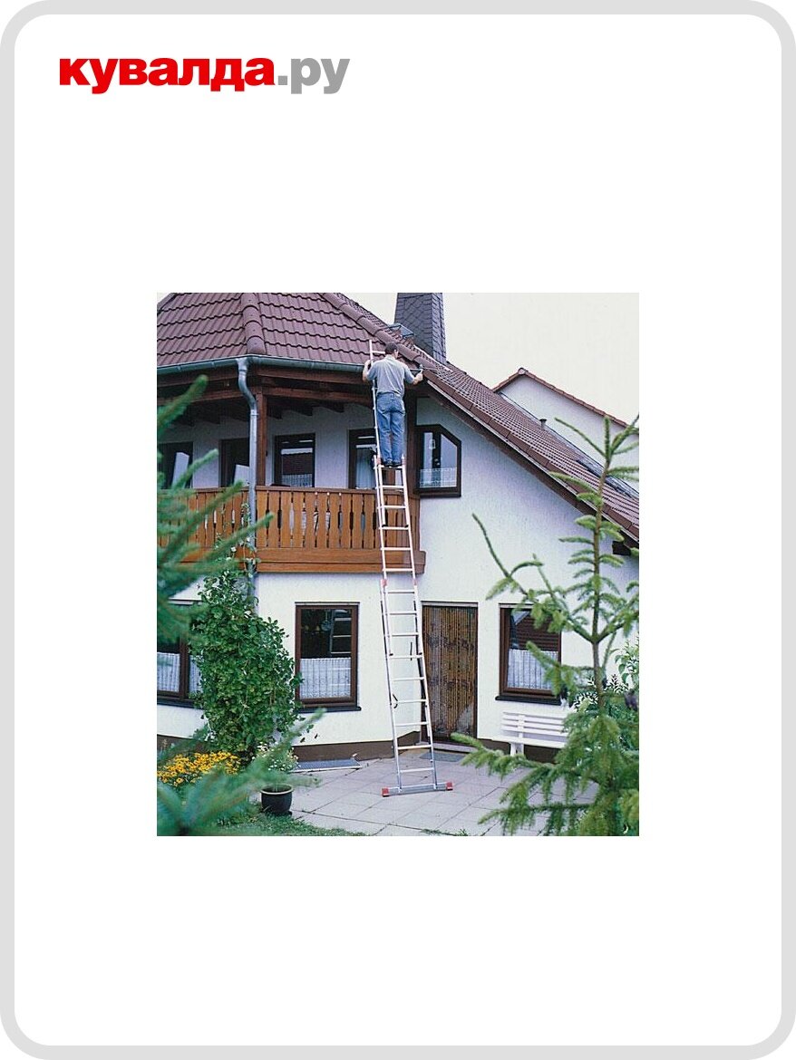 Лестница трехсекционная универсальная TRIBILO KRAUSE MONTO изготовлена из алюминия, но имеет основную особенность — порошковое покрытие конструкции для простоты эксплуатации и обслуживания.