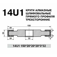 Круг алмазный трехсторонний базис АС4 В2-01 14U1 (150х20х3х32мм; 160/125) ПАИ 4820235011383 Применение: Шлифование пазов в твердосплавных деталях; Заточка и доводка твердосплавных пластин и инструмента; В ручном режиме работа без охлаждения; В машинном (автоматическом) режиме работа с охлаждением. Справочная информация: Перевод зернистости из стандарта FEPA в ГОСТ 9206-80: F150=100/80; F120=125/100; F90(F100)=160/125; Алмазоносный слой изготовлен из алмазных шлифпорошков АС4 на органической связке В2-01 (смола); Для заточки твердосплавного инструмента без охлаждения алмазными кругами на органических связках завод-изготовитель рекомендует режимы: Окружная скорость 15-22 м/сек; Для круга диаметром 125 мм это 1150-1680 об/мин; Для круга диаметром 150 мм это 950-1400 об/мин.