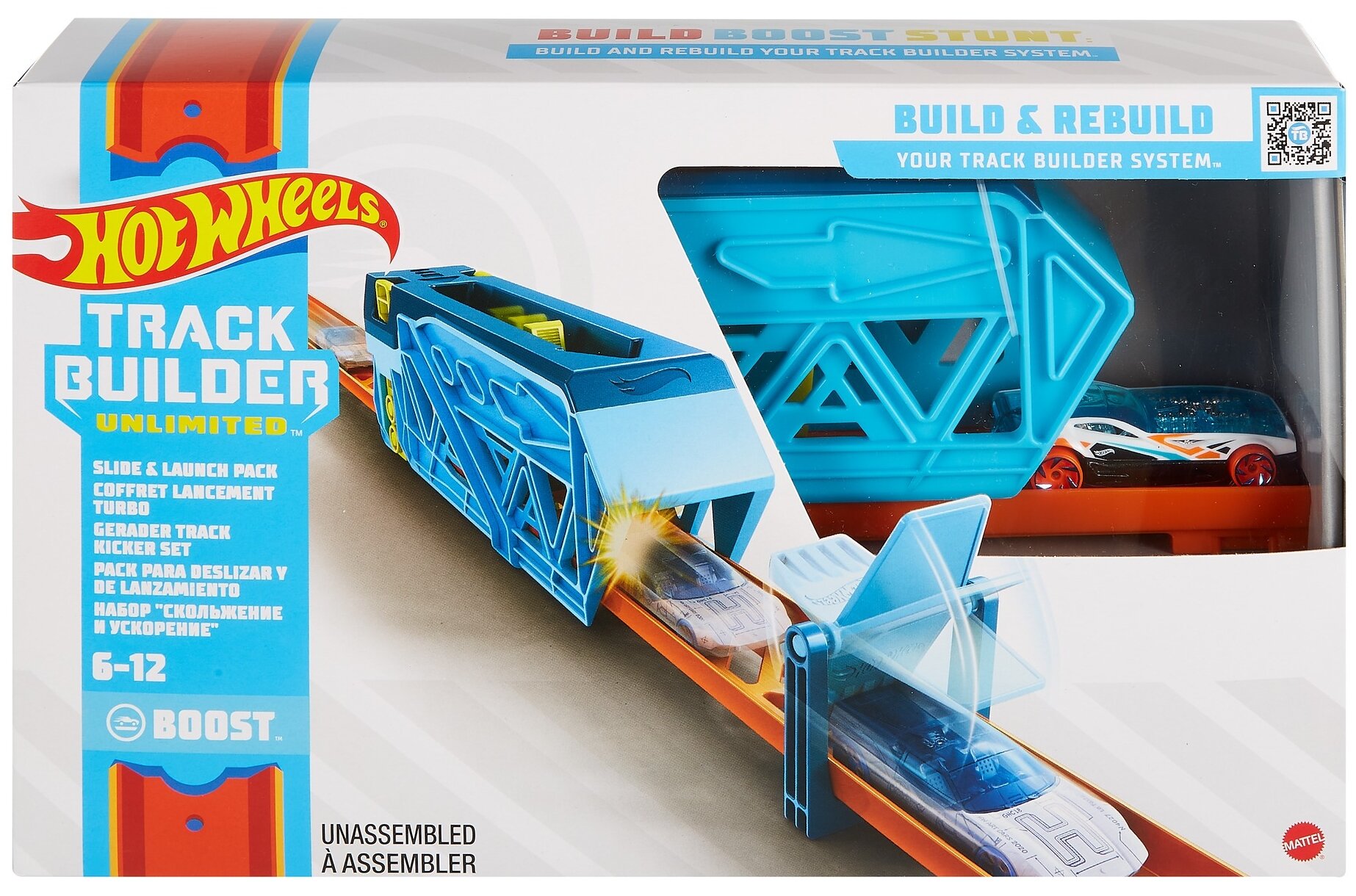 Конструктор трасс Hot Wheels Скольжение и ускорение GVG08 Этот игровой набор от Hot Wheels поможет детям сконструировать собственную трассу и построить путь к мечте с незабываемыми трюками! Установку Скольжение и ускорение можно разместить в любом месте на прямой трассе Hot Wheels одним нажатием кнопки. Натянутый с помощью резинки ускоритель подтолкнет машинку к следующему трюку или препятствию. Дети могут экспериментировать и закреплять ускоритель таким образом, чтобы получить от него максимальную отдачу! Соберите все наборы Конструктор трасс и постройте трассу с неограниченными возможностями! Каждый набор продается отдельно. Hot Wheels и связанные с ним товарные знаки, и фирменный стиль принадлежат Mattel Особенности: Конструктор трасс предлагает неограниченное количество экспериментов по созданию, маневрам и повышению уровня сложности различными наборами комплектующих, Дети могут встроить ускоритель в любом месте прямой трассы Hot Wheels и наблюдать, как их машинки мчатся на предельной скорости к следующему препятствия, В набор входит машинка Hot Wheels в масштабе 1:64, Отличное дополнение любой трассы Hot Wheels, Игры с набором стимулируют двигательную активность, глазомер, скорость реакции, развивают познавательный интерес и пространственное мышление, Производство Mattel В комплект входит 1 машинка Hot Wheels, комплектующие трассы Меры предосторожности: Осторожно! Возможно содержание мелких деталей