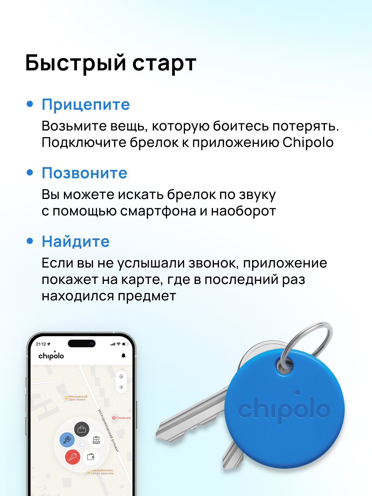 Купить Умный брелок Chipolo ONE со сменной батарейкой (Синий) с доставкой по всей России.
