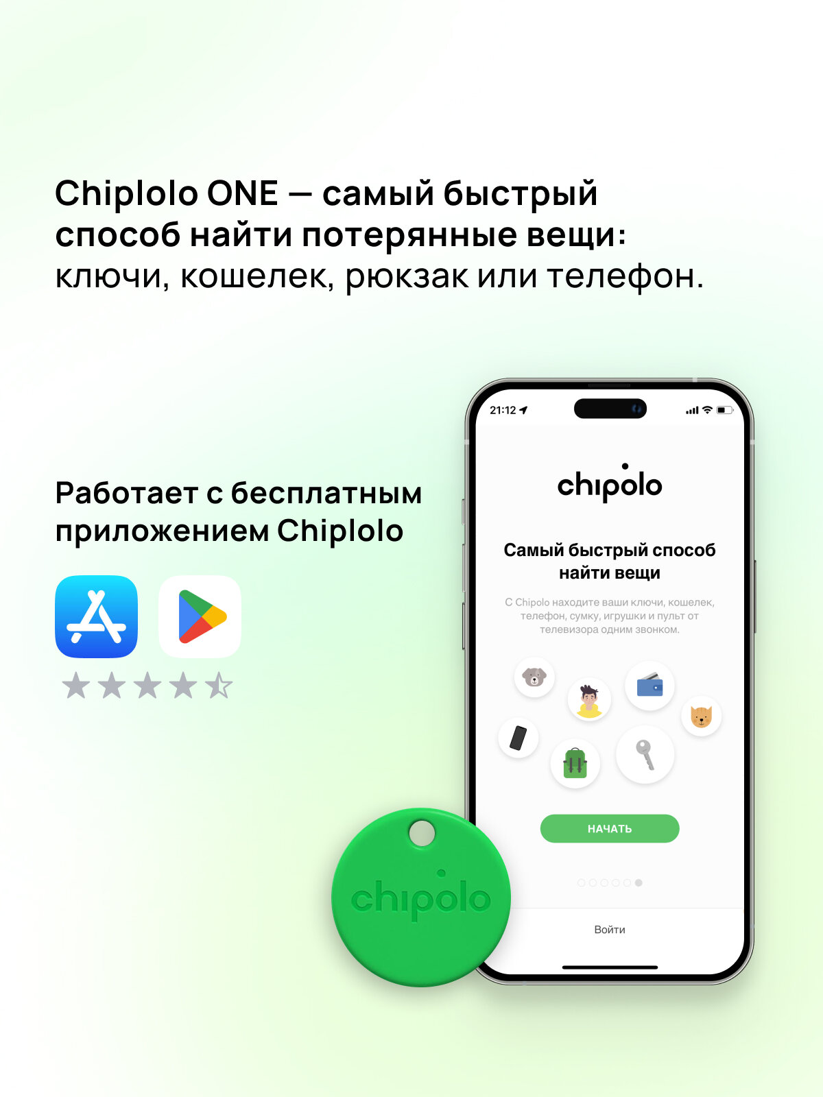Купить Умный брелок Chipolo ONE со сменной батарейкой (Зеленый) с доставкой по всей России.