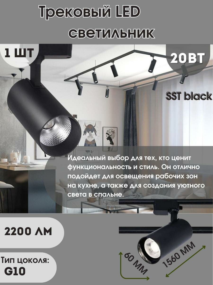 Трековый LED светильник, на однофазный шинопровод SST black на 20 Вт.: сравнение цен, характеристики, фото, актуальное наличие и цены.