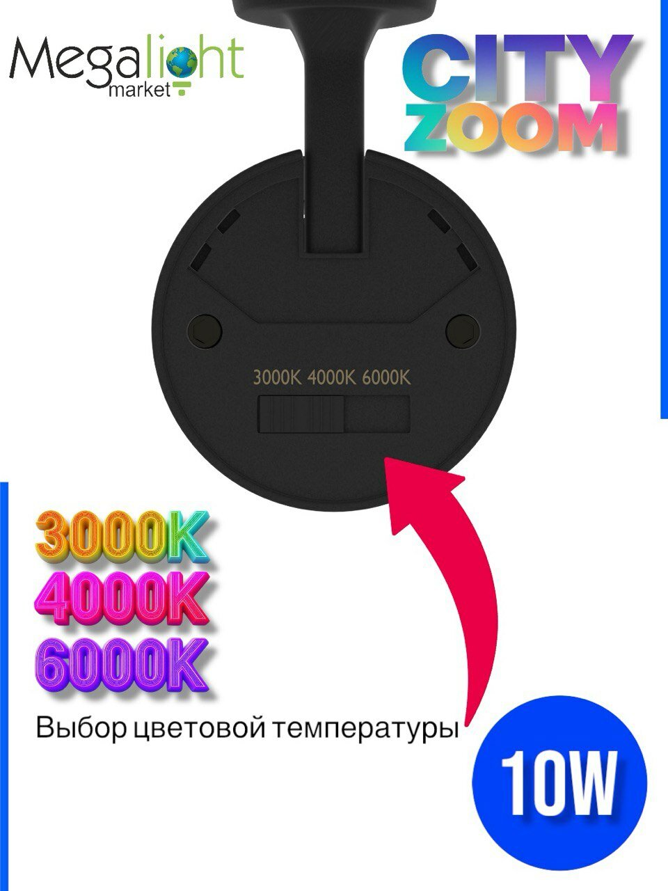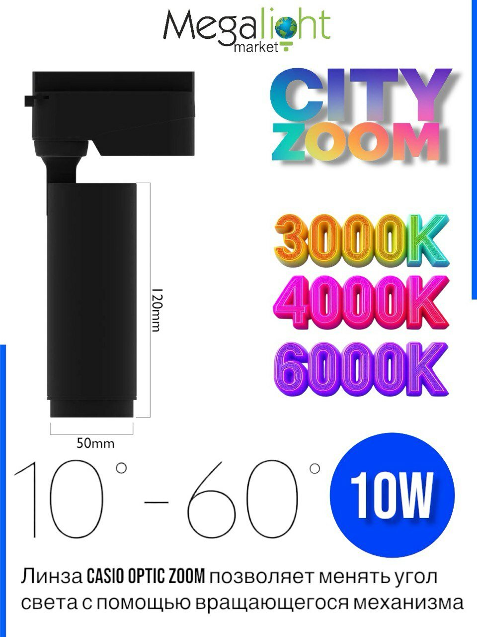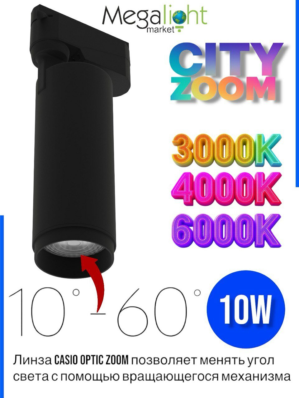 Трековый светильник светодиодный CITY ZOOM NEW 10W 3000K/4000K/6000К CRI85 Угол света 10°- 60° Черный корпус 2TRA | 220V: сравнение цен, характеристики, фото, актуальное наличие и цены.