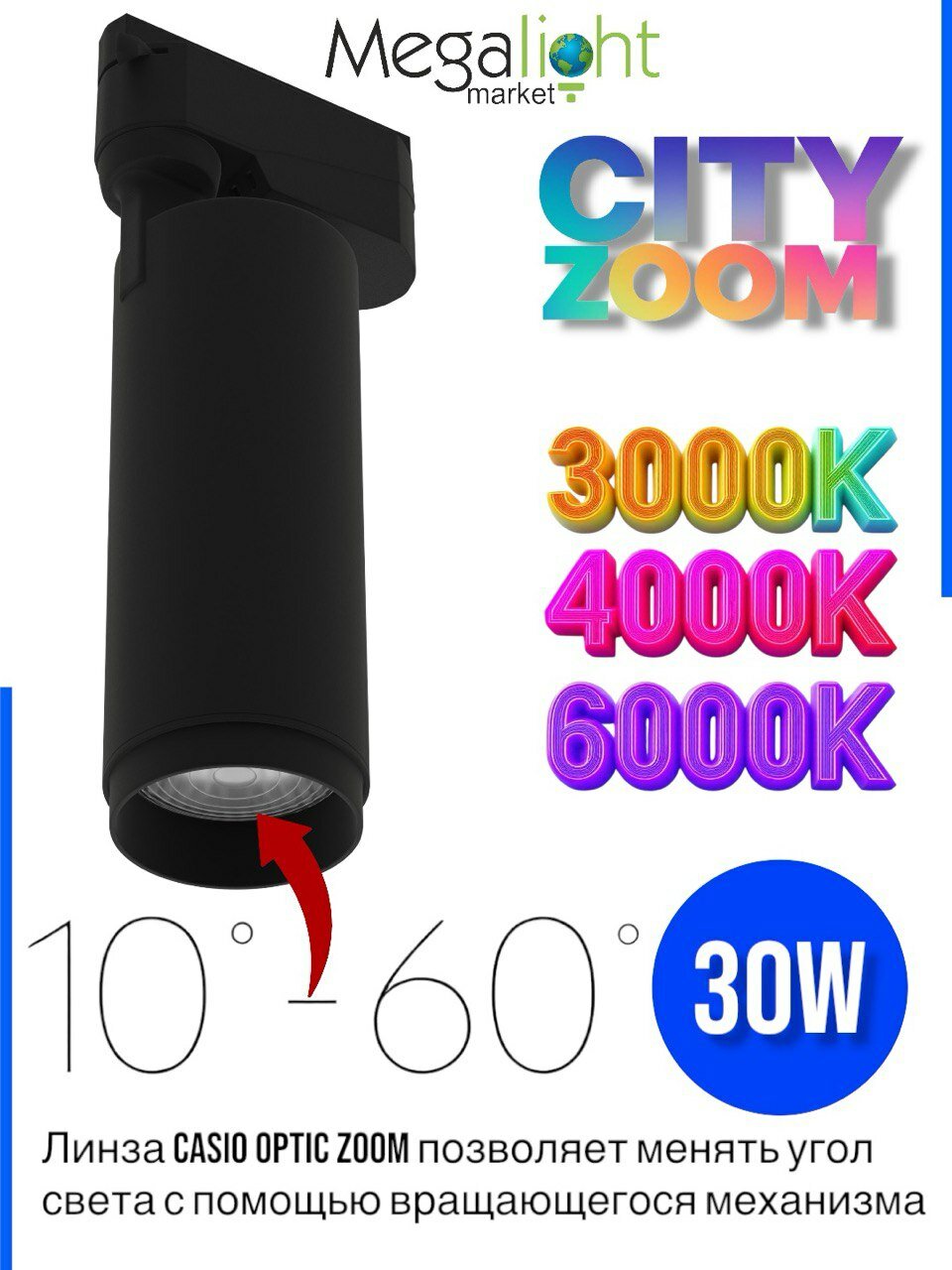 Трековый светильник светодиодный CITY ZOOM NEW 30W 3000K/4000K/6000К CRI85 Угол света 10°- 60° Черный корпус 2TRA | 220V: сравнение цен, характеристики, фото, актуальное наличие и цены.