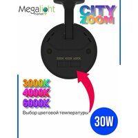 Купить Трековый светильник светодиодный CITY ZOOM NEW 30W 3000K/4000K/6000К CRI85 Угол света 10°- 60° Черный корпус 2TRA | 220V с доставкой по всей России.