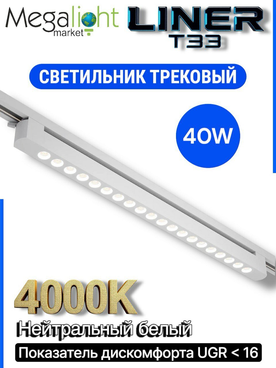 Трековый светильник светодиодный LINER T33 40W 36° 4000К Белый корпус Black Mask 598х33x34mm 2TRA | 220V: сравнение цен, характеристики, фото, актуальное наличие и цены.