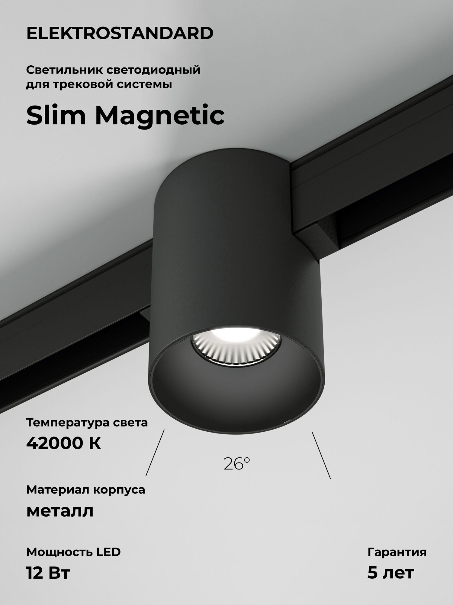 Трековый светодиодный светильник Elektrostandard Slim Magnetic Solo 85054/01, 12 Вт, 4200 K, цвет чёрный: сравнение цен, характеристики, фото, актуальное наличие и цены.