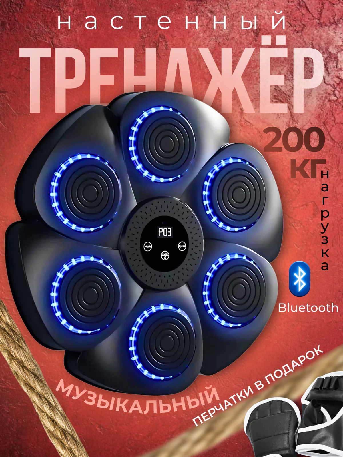 Настенный электронный боксерский тренажер - это уникальное и многофункциональное устройство, которое станет отличным помощником для любителей бокса и новичков. Тренажер оснащен интерактивным музыкальным модулем, который создает атмосферу настоящего боксерского поединка, делая тренировки более продуктивными и мотивирующими. Bluetooth: подключайтесь к смартфону и тренируйтесь под любимую музыку. Перчатки в комплекте: черные перчатки, которые помогут вам чувствовать себя настоящим боксером. Уровни сложности: настройка под ваш уровень подготовки. Счетчик ударов: отслеживайте прогресс, ставьте рекорды и мотивируйте себя на новые достижения! Компактные и легкость: удобное для хранения и транспортировки. Выбирайте настенный электронный боксерский тренажёр - это не просто эффективный инструмент для тренировок, но и возможность разнообразить занятие, сделав их веселыми, динамичными и результативными. Добавьте активность в свою жизнь, сжигайте калории с удовольствием и достигайте своих целей!