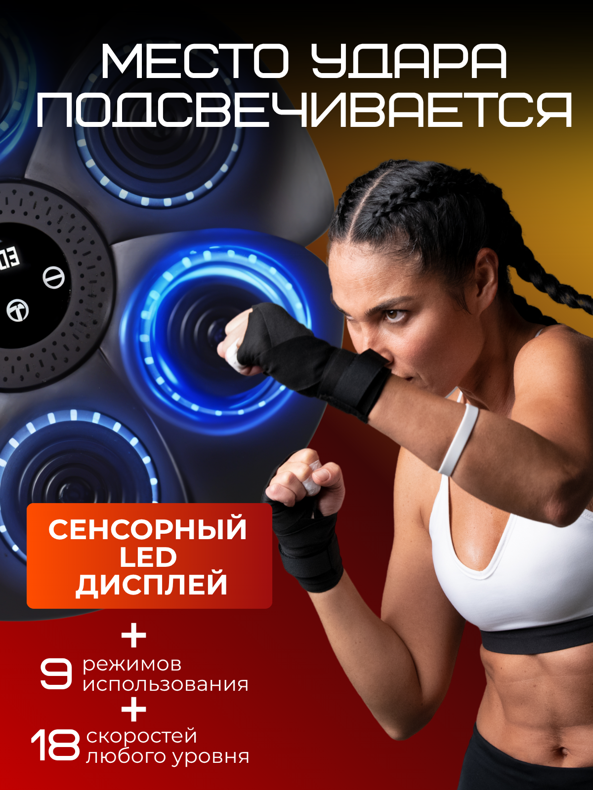 Купить Тренажер для бокса «Интерактивный музыкальный тренажер с перчатками», настенный, электронный с доставкой по всей России.