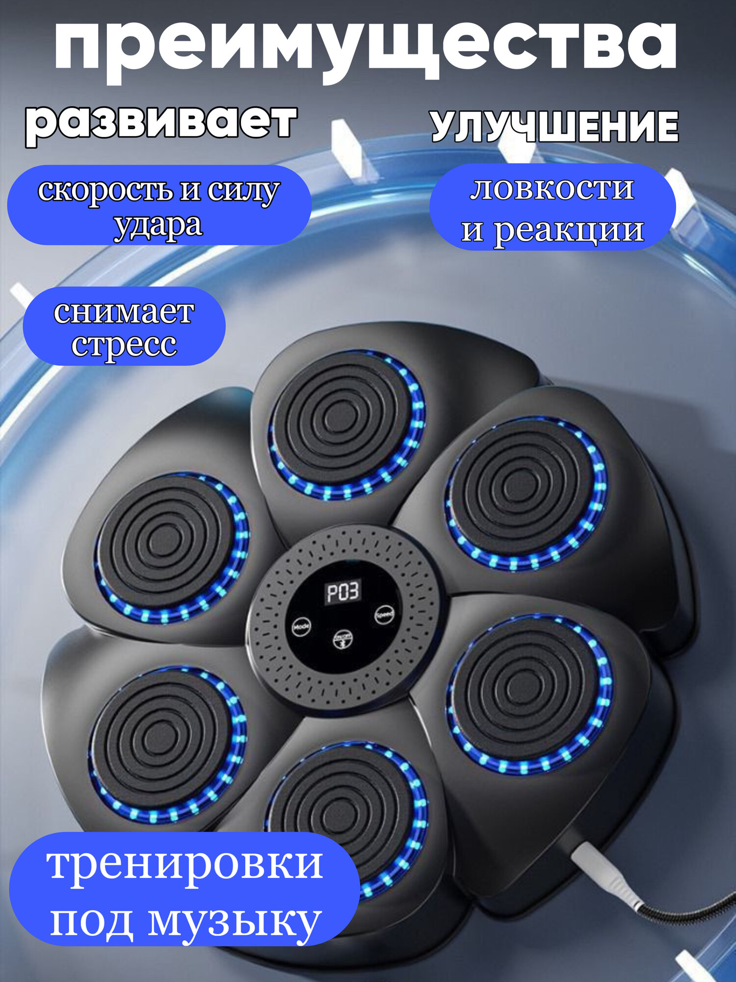Многофункциональный боксерский электронный тренажёр / настенная груша боксёрская станет отличным подарком для маленьких спортсменов и поможет им развить координацию движений, скорость реакции и укрепить мышцы. Боксерский тренажёр уникален тем, что заниматься можно под любимую музыку, благодаря встроенным мелодиям и звукам, которые активируются при ударах. Мишени тренажёра с подсветкой позволят тренировать точность и силу ударов. В рандомном порядке мишень светится. Это помогает развивать отличную реакцию. Особенность данной модели заключается в том, что она подходит не только детям, но и взрослым, что делает ее универсальным и многофункциональным тренажёров для всей семьи. Приятным дополнением является возможность подключения Bluetooth, что позволяет управлять музыкой на груше удаленно, выбирая любимые мелодии и регулируя громкость прямо во время тренировки. Комплект станет прекрасным выбором для тех, кто хочет разнообразить свои тренировки и весело провести время не только одному, но и в компании друзей, обучаясь боксу, развивая свои спортивные навыки и весело, с пользой проводить свободное время. В комплекте кроме тренажёра клеящие крепления для любой поверхности, провод USB. перчатки В подарок! Отличный подарок на день рождение, новый год, 23 февраля и на любой другой праздник. Электронный тренажёр для бокса. Музыкальный тренажёр для бокса. Настенная груша для бокса, боксерская груша на стену.