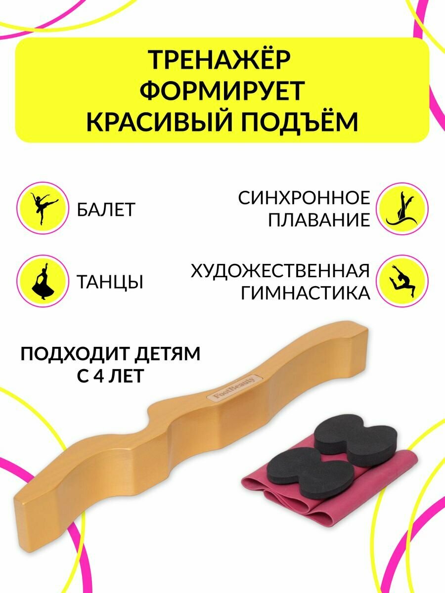 Тренажёр для стопы с широкой ручкой. Состав 100% дерево. Тренажёр подойдет для самых маленьких наших клиенток и начинающих. Данный товар отличается от нашего профессионального тренажера изгибами и ручкой. В комплект входят профессионально плотная латексная резинка, которая будет плотно держать ножку и все пальчики , а так же чёрные накладки под пятку и голень для улучшения работы. Для более максимального эффекта, мы рекомендуем выбирать тренажер с узкой ручкой, сделанный по Испанской технологии. Но и этот тренажер, не менее эффективен и сделан из качественного дерева. Смотрите внимательно раздел комплектация! Коплектация:1. Тренажёр - 1ш. 2. Резинка узкая - 1 шт . 3. Черные фиксаторы - 2 шт. 4. Инструкция-1 шт. Размерный ряд с 25-38 (универсальный размер). Почему мы с нашим 10 летним опытом нашего производства выбираем дерево? Пластмасовый тренажер легкий и поднимается с пола вместе с ногой в работе, поэтому нет результата и все занятия бессмысленны.