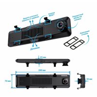 Видеорегистратор-зеркало Rekam F370, с 3-мя камерами, автомобильный
