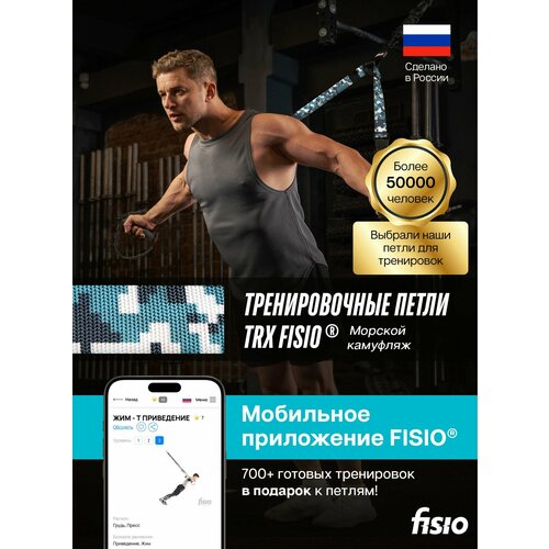 Купить Тренировочные петли TRX FISIO Герой (морской камуфляж) + мобильное приложение с 700+ тренировками, 38 мм стропа, нагрузка 750кг с доставкой по всей России.