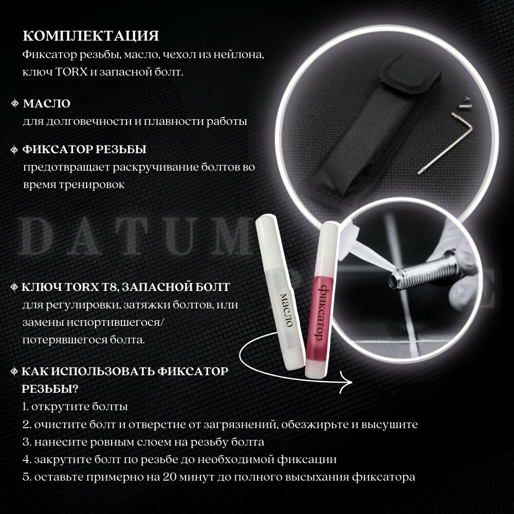 комплектация: нож,чехол,фиксатор резьбы,ключ torx,запасной болт; материал чехла: нейлон