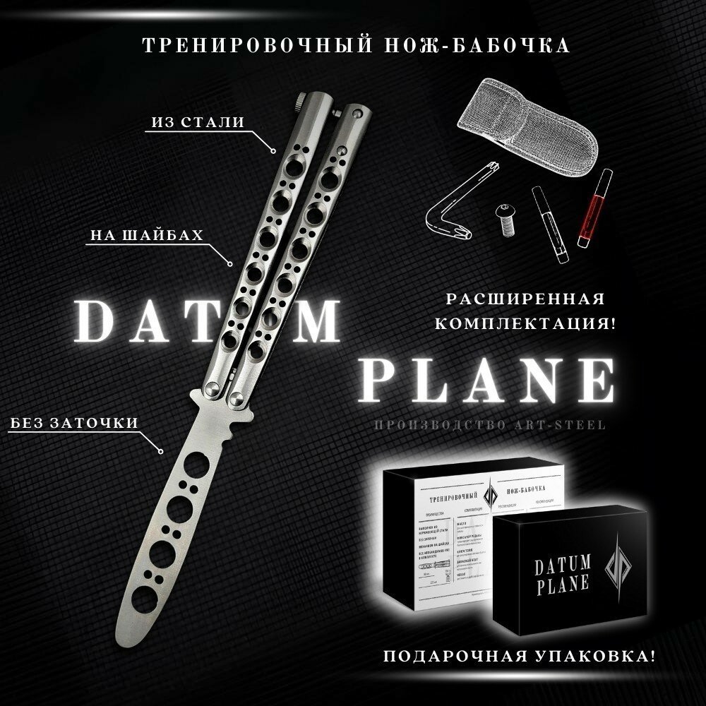Характеристики Бренд - ARTSTEEL Тип ножа - Нож-бабочкa Назначение - Тренировочный Размеры Общая длина, мм - 230 Длина клинка, мм - 98 Толщина клинка, мм - 2 Длина ножа в сложенном виде, мм - 140 Масса, гр - 165 Материалы Материал клинка - Нержавеющая сталь Марка стали - 420 Материал рукояти - Сталь Форма клинка - Blunt Tip Заточка - Без заточки С фиксатором - Да Замок - Замок с фиксатором Чехол в комплекте - Да Материал чехла - нейлон