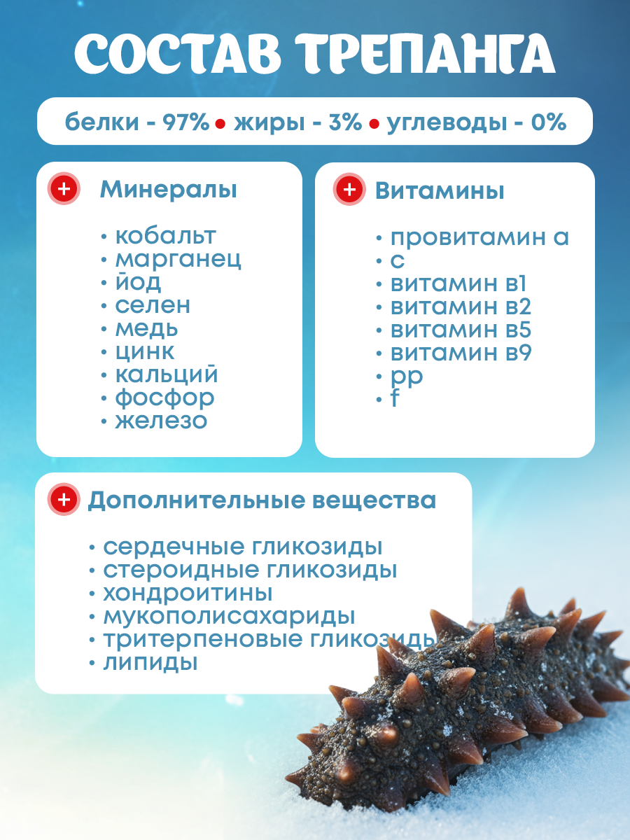 | Состав | Дальневосточный трепанг, дальневосточный липовый мед. |