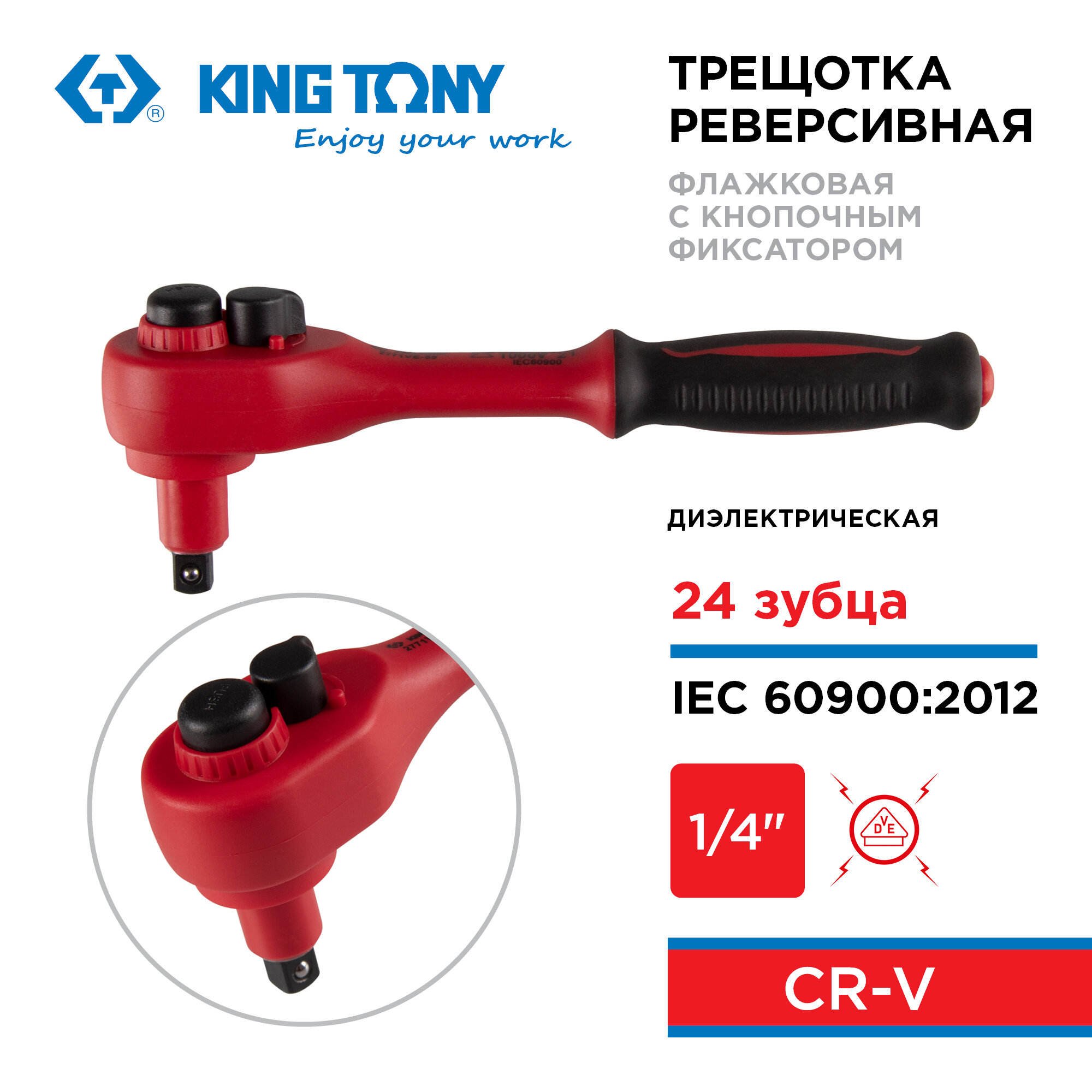 Купить Трещотка диэлектрическая 1/4″, 150 мм, 24 зубца, флажковая с кнопкой, фиксатор KING TONY 2771VE-55 с доставкой по всей России. Трещотка диэлектрическая 1/4″, 150 мм, 24 зубца, флажковая с кнопкой, фиксатор KING TONY 2771VE-55: сравнение цен, характеристики, фото, актуальное наличие и цены.
