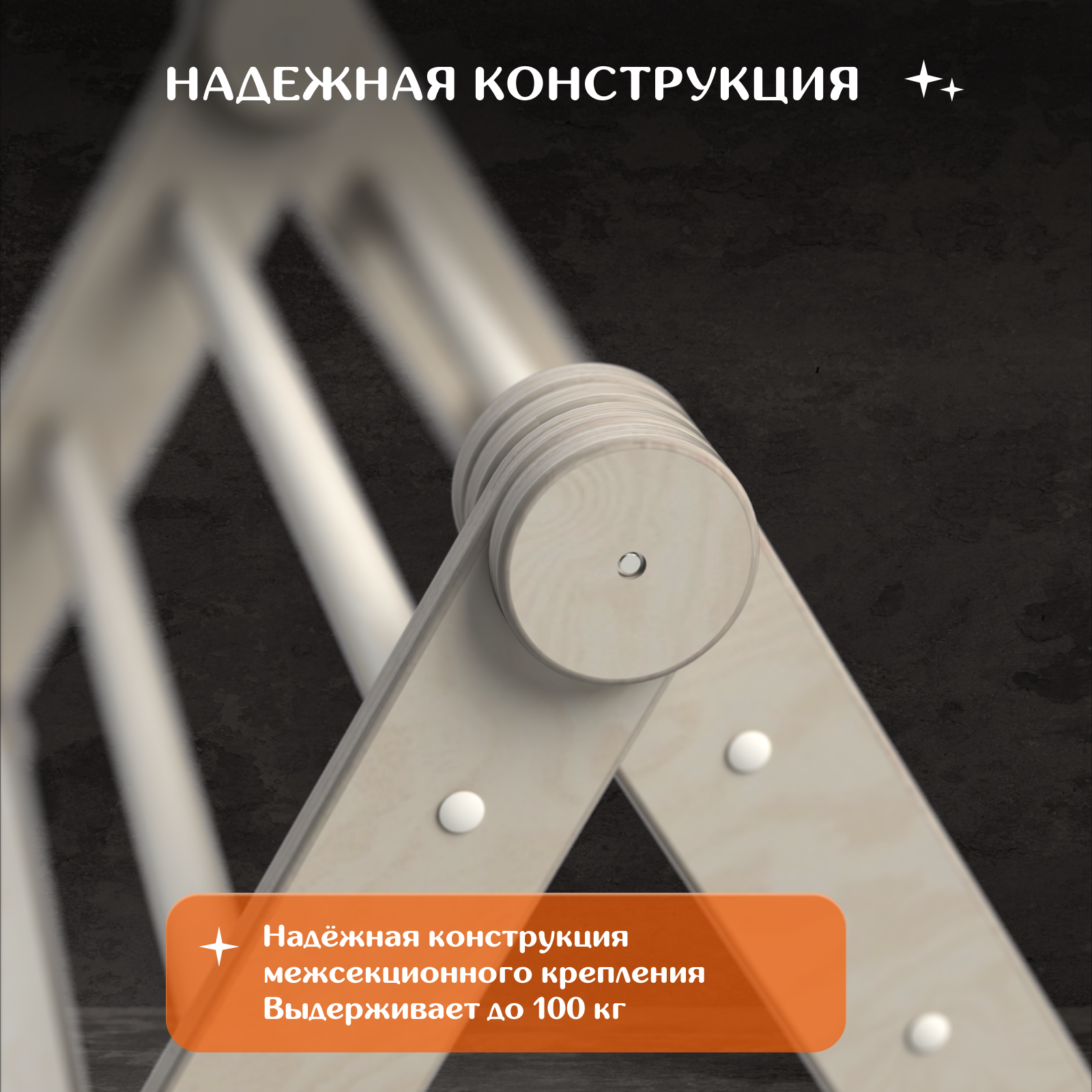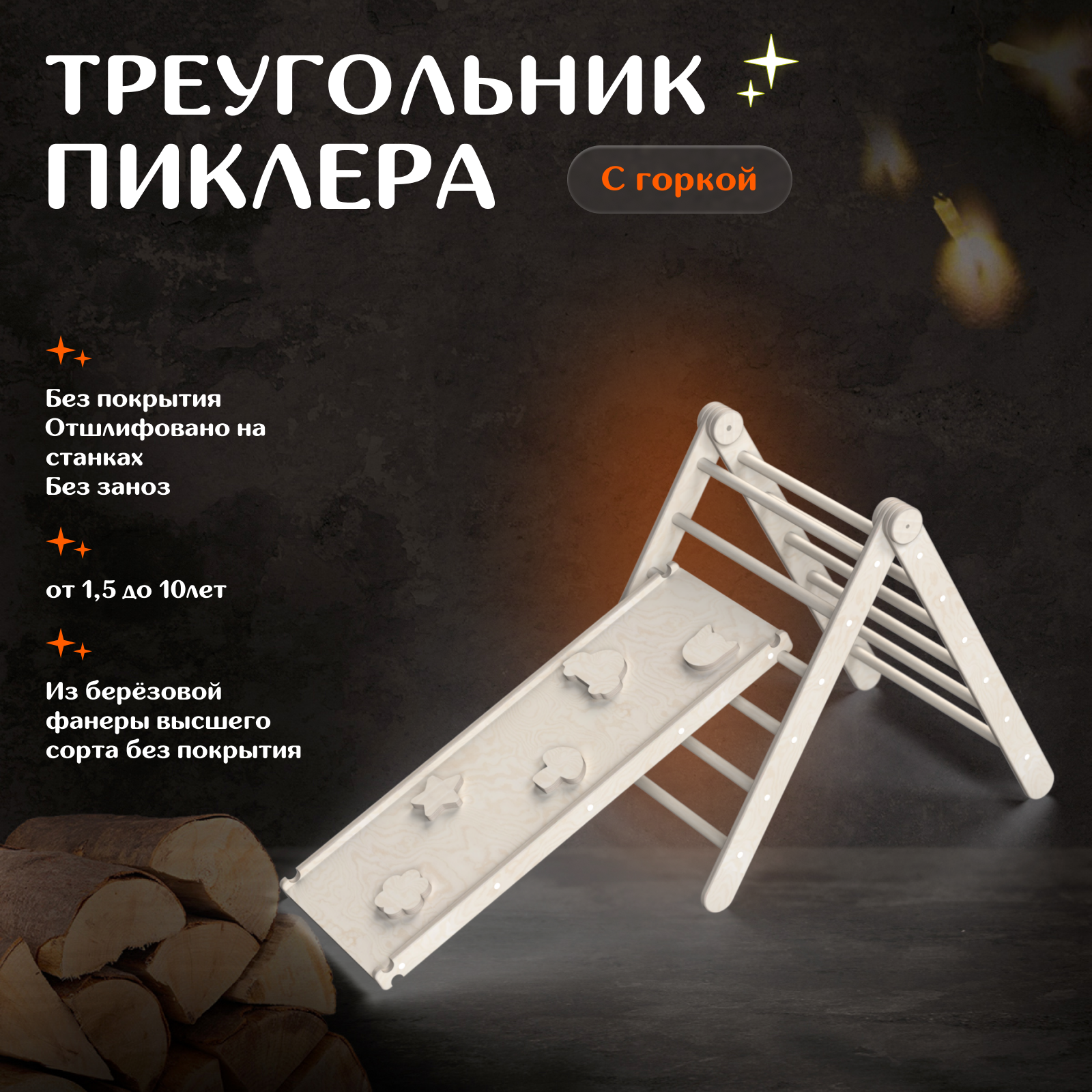 Треугольник Пиклера - это двусторонняя скалолазная горка для детей. Детский спортивный комплекс является наиболее оптимальным вариантом для физического развития маленьких детей, а также прекрасной альтернативой шведской стенке и многофункциональным спортивным уголкам. Треугольник Пиклера с горкой доступен для детей от 8 месяцев, он будет незаменимым помощником для игры, развития ребёнка, а также экономии времени родителей. Игрушка для мальчика или девочки, арка Пиклера ,детская площадка для дома - это всё Вы найдёте в этом товаре. Малыш будет рад полазить весело и безопасно. Игровой комплекс сделан из качественной фанеры для детской мебели. Имеет все соответствия по качеству для данной игрушки для детей. И отвечает всем требованиям безопасности. Лесенка скалодром для ребенка удобно складывается и имеет горку, которая может переворачиваться как гладкой стороной там и стать скалодромом для ребенка. Треугольник Пиклер легко собирается и регулируется, а его компактный размер позволяет убрать его за шкаф, когда он не используется. не просто игрушка, это целый мир развлечений и возможностей. Он сочетает в себе принципы Монтессори и спортивные игры, чтобы ваш ребенок мог развиваться физически и умственно. Деревянные игрушки всегда были популярными среди детей, и треугольник Пиклер не исключение. Комплект из треугольника и горки тщательно отшлифован, без покрытия.
