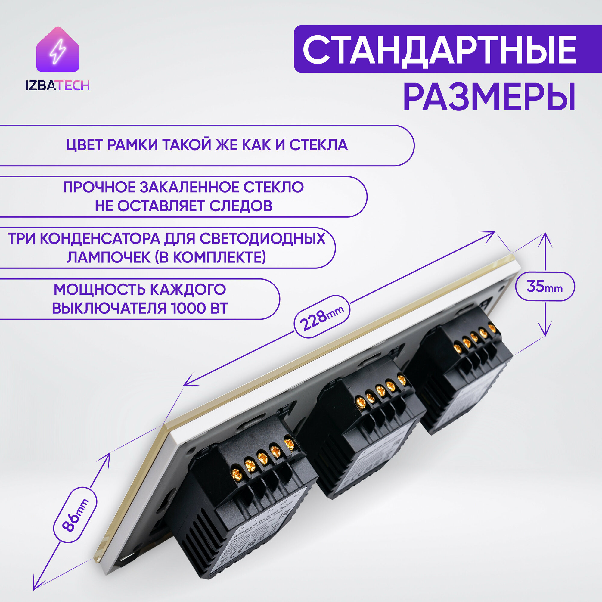 •Данные выключатели очень мощные - держат до 1500вт на 1 группу обычных лампочек, и до 1000вт светодиодных лампочек, поэтому можете не сомневаться - они точно потянут любые ваши светильники, и будут радовать вас своей красотой и стабильностью работы как физически, по нажатию на сенсорные кнопки с подсветкой, так и голосом, сказав Алисе в колонке или в телефоне.