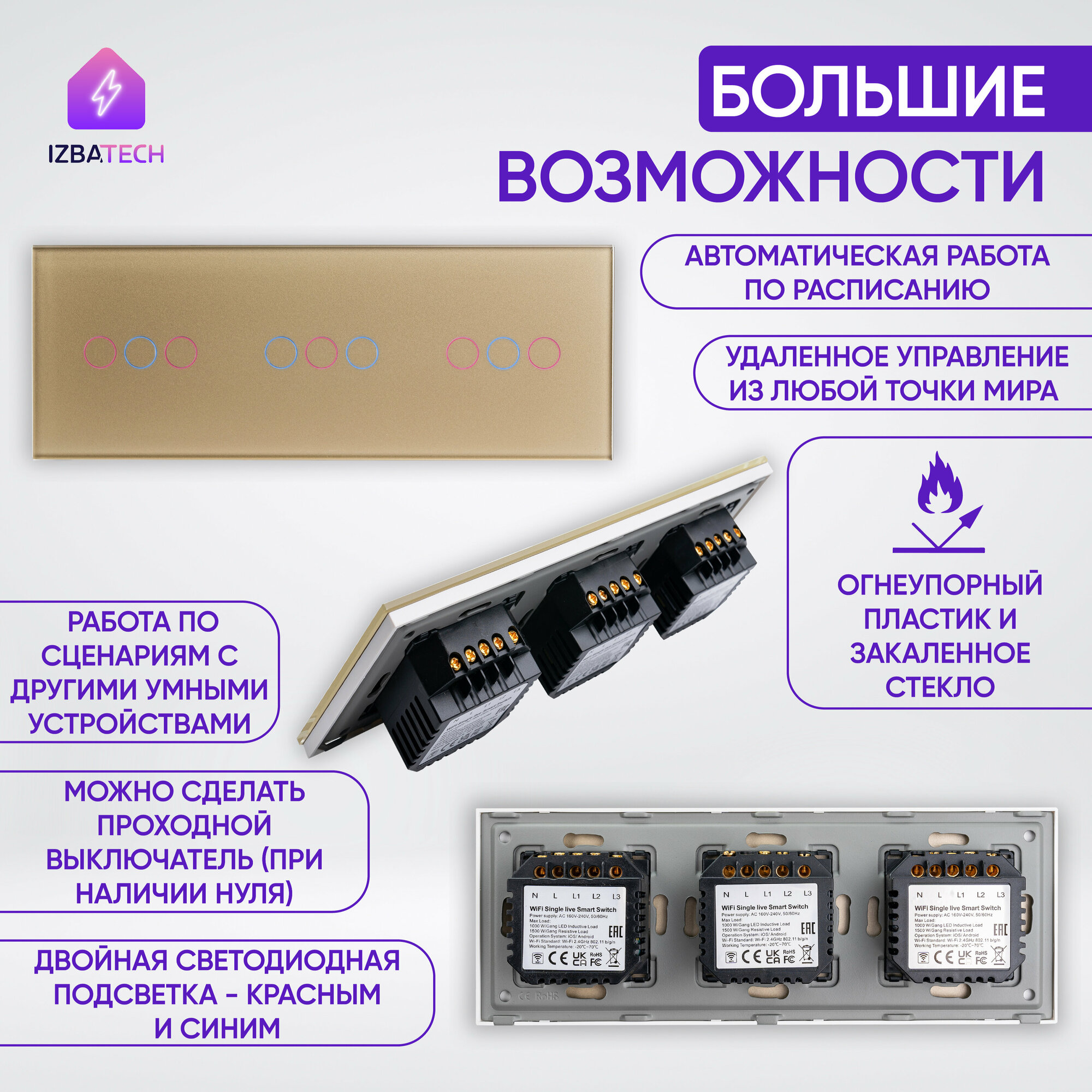 Купить Умный выключатель WIFI тройной С нулем в одной рамке, умный дом, панель для трех выключателей, трехклавишные, золотой с доставкой по всей России. Умный выключатель WIFI тройной С нулем в одной рамке, умный дом, панель для трех выключателей, трехклавишные, золотой: сравнение цен, характеристики, фото, актуальное наличие и цены.