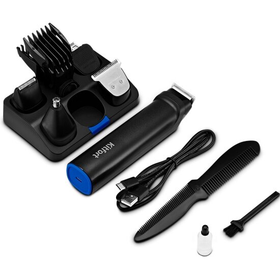 кабель USB, кабель для зарядки, масло, насадка для бороды, насадка для носа, насадка для стрижки волос в носу, подставка для зарядки, расческа, щеточка