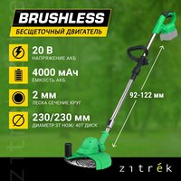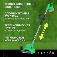 Триммер аккумуляторный бесщеточный ZITREK GreenCut 20V предназначен для скашивания травы в труднодоступных местах, вдоль заборов, клумб, для подравнивания газонов, краев садовых дорожек.