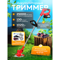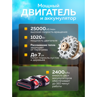 | Подробная комплектация | Триммер аккумуляторный садовый, аккумуляторы 2шт, зарядное устройство, съемная ручка, защитный экран, пильный диск 1шт, металлические лезвия 2шт, пластиковые лезвия 5шт, шестигранный ключ, перчатки, защитные очки, инструкция на русском языке, коробка |