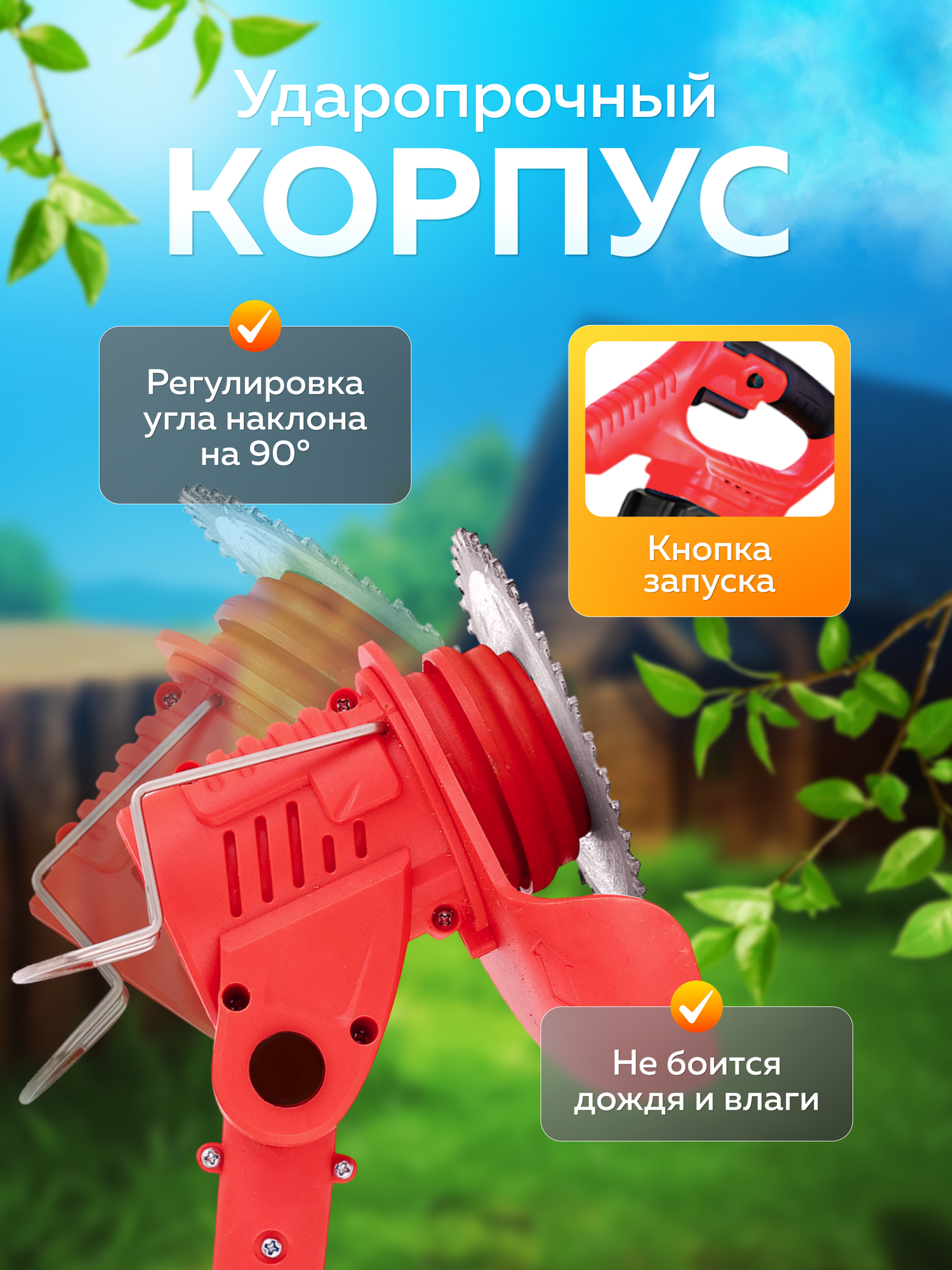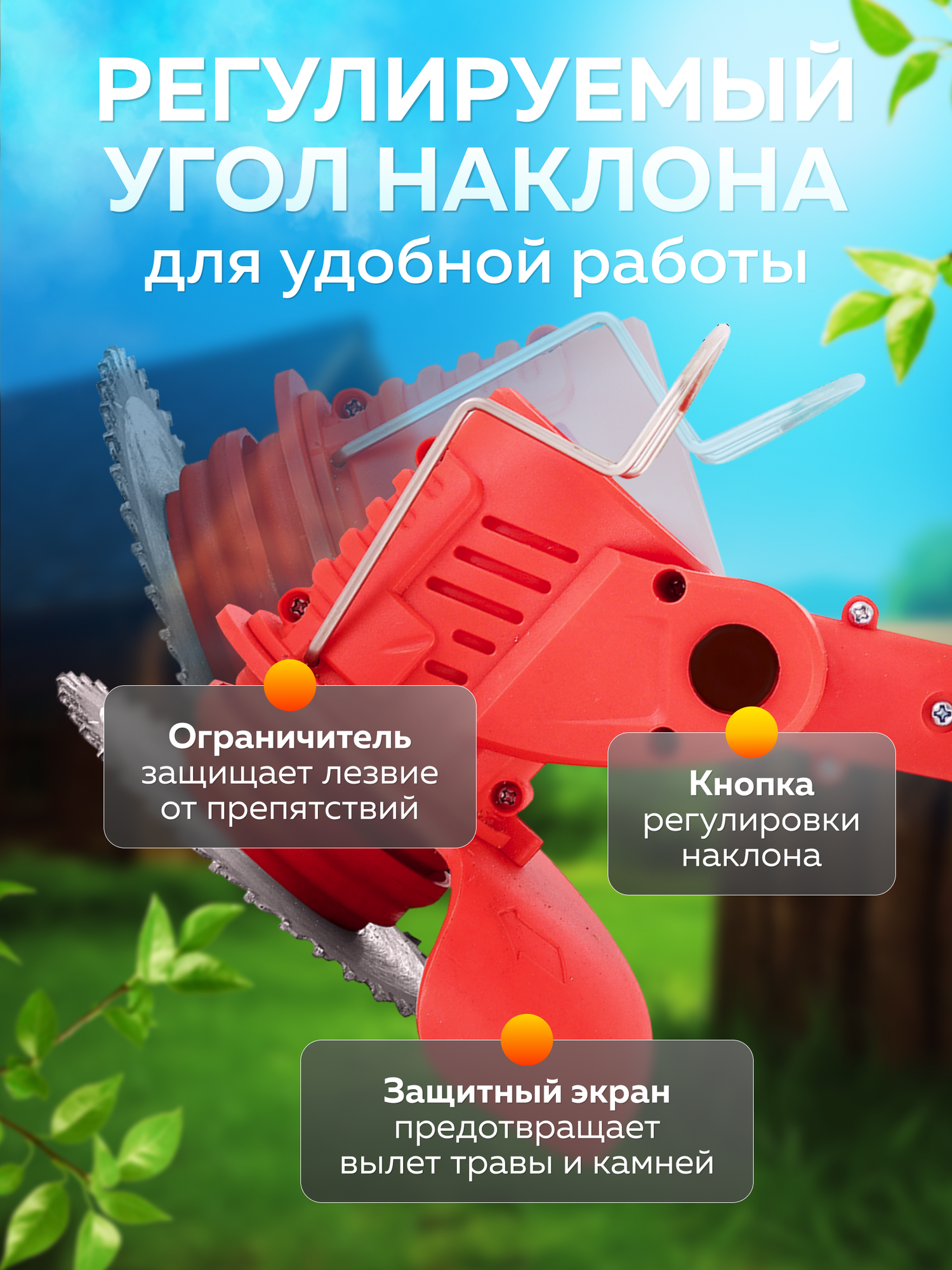 | Дополнительные функции | аккумулятор в комплекте, возможность установки кустореза/сучкореза |