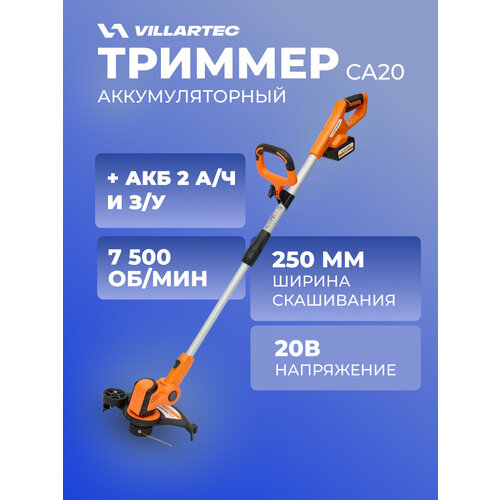 Купить Триммер аккумуляторный садовый мотокоса 20 В + аккумулятор 2 А/ч + зарядное / VILLARTEC CA20Set с доставкой по всей России.